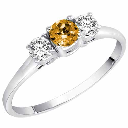 Platinum Round 3 Stone Citrine & Diamond Ring (1/2 ctw) Size 7