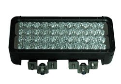 Infrared LED Light Emitter - Extreme Environment - 1300'L X 180'W Spot Beam - 9-42VDC (-Spot-850nm) . Infrared LED Light Emitter - Extreme Environment - 1300'L X 180'W Spot Beam - 9-42VDC (-Spot-850nm). Buy American CompliantThe Magnalight LEDLB-40X2E-IR LED Light Bar offers high 7200 lumen infrared light output and extreme durability for demanding operating conditions. This IP68 rated infrared LED light bar is waterproof to three meters and produces an infrared light beam that can only be seen through the use of night vision goggles. 850Nm versions have a very slight red glow around the LED emitters when veiwed from a certain angle while 940Nm versions are completely invisible to the naked eye. This light can run on any voltage from 9 to 42 volts and provides an extremely rugged infrared lighting solution that is ideal for use in commercial and industrial security applications as well as military environments. The LEDLB-40X2E-IR infrared LED light bar from Magnalight produces light in the infrared 850Nm or 940Nm end of the light spectrum depending upon the version selected. Forty Edison Edixeon® 3 watt infrared emitters producing 180 lumens each are arranged in stacked rows and paired with high purity 10 degree optics to produce a tightly focused spot beam 1300' long by 180' wide with limited spread or light spillage. We offer optional floodlight versions of this light that have 35 degree optics to produce a wider beam spread and more light over a larger area nearer the fixture. These LED light bars are IP68 rated and waterproof to 3 meters, sealed against intrusion by dust and dirt and very ruggedly constructed to withstand the most demanding environments, conditions and applications. The entire Magnalight LEDLB-E series are constructed of extruded aluminum and feature heavier housings, rubber isolated mounts and unbreakable polycarbonate lenses to provide increased durability against vibrations, impacts, waves, hard rains, sand and high winds.
