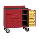 | ✚✚✚ Vari-Tuff Portable Bin Cabinet - 36x21x35 Valley Craft Vari-Tuff Portable Bin Cabinet - 21x36x35 Vari-TuffTM Portable Bin Cabinet offers a variety of storage options including drawers, shelving and door bins. Rolls on 5" rubber casters. Door features full-length piano hinge and single-point locking handle. Individual locks on drawers. Offset door brackets hold up to 12 parts bins. Features non-slip black rubber mat on top surface and 3"-high backstop. Handles up to 800 lbs. Equipped with (12) 4" x 5" x 3" bins. 48.00 L. 40.00 W. 26.00 H.