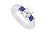 Three Stone Diamond and Sapphire Ring : 14K White Gold - 0.33 CT TGW Size 14.5Two cool blue sapphires are prong-set beside a princess-cut diamond. These three stones are a symbol of your past present and the future. Made in 14K white gold this ring has a total gem weight (TGW) of 0.33 ct...Please note: Normal shipping time is for the average ring size (Women - size 6, Men - size 10). If you order a different size, the ring will be custom made to that size and will take longer for shipping.......Please note: Normal shipping time is for the average ring size (Women - size 6, Men - size 10). If you order a different size, the ring will be custom made to that size and will take longer for shipping...