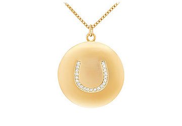 #Twelve brilliant-cut round diamonds are set in the classic horseshoe design on a polished disc. Made in 14K yellow gold this pendant has a total diamond weight (TDW) of 0.15 ct.