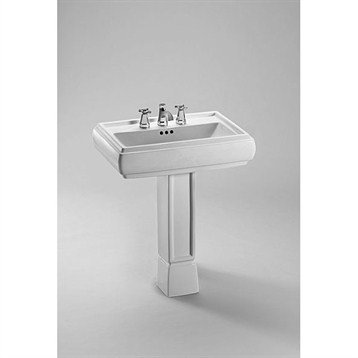 TOTO Ethos(TM) Design NI Lavatory w/ SanaGloss (Sink Only)?Representing the cache of Park Avenue, Central Park and Fifth Avenue, the Ethos(TM) Design NI exudes class, distinction and style. From the strong, sculpted lavatory to the vintage-inspired faucet and handles, this dazzling combination revives the Golden Age of Architecture in New York. Available with single hole, 4 inch, or 8 inch faucet mounts. Pedestal* NOT included, but available. Features & Specs SanaGloss glazing: Super smooth glazing helps keep lavatory clean Rear overflow Complete with mounting hardware One Year Limited Warranty View Spec Sheet Dimensions Width Depth 28 3/4 Inch 18 7/8 Inch *Pedestal required for support.