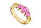 Pink Sapphire Three Stone Ring : 14K Yellow Gold - 0.75 CT TGW Size 13.5